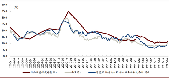 图表: 社融、M2、银行总资产增速上行