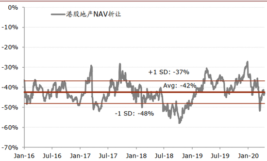 图表: 港股地产公司历史NAV折让水平和动态市盈率
