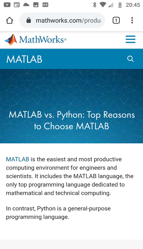 面对Python的攻势,连MATLAB也急了,其官方网站也开始比对Python为自己加分了。