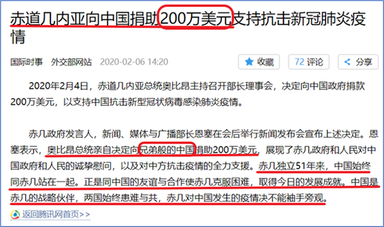 今年新冠疫情发生后,赤道几内亚向中国捐助200万美元。要知道,这个国家总人口才130万,等于平均每个人都为中国捐了1.5美元。