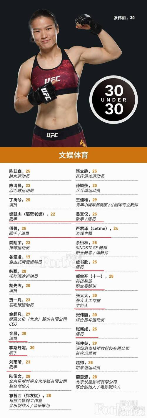 打开榜单,第一个版块就是“文娱体育”,格斗运动员张伟丽、花样滑冰运动员、跳水运动员陈艾森、羽毛球运动员陈清晨等人均上榜,可谓是实至名归。