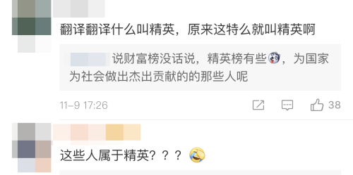 可如此结果,让不少网友疑惑,“这不是精英榜吗?是对精英有什么误解?””他们是做出了什么贡献呢?““在平凡中创造了什么伟大?”