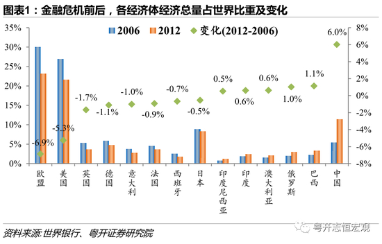 1、金融危机前后,金砖国家占全球经济总量比重自11.8%提高至20.6%