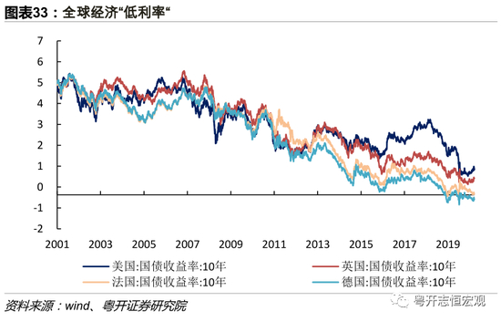 全球经济呈现 “低增长、低利率、低通胀”的长期停滞状态。08年金融危机后,发达经济体普遍采用大规模量化宽松政策,大幅降息,使得长期利率中枢下移。由于全球债务危机隐患凸显、欧盟一体化进程倒退、全球贸易摩擦升级、人口老龄化和贫富差距进一步拉大,全球经济增长乏力,处在“低增长“阶段。量化宽松对于经济的刺激作用逐步减弱,发达国家一方面寻求非常规货币政策或其他财政、产业政策的发力,另一方面,低利率没有带来通胀,经济增长低迷、需求增长不足、原油价格低位等因素使得“低通胀“现象凸显。
