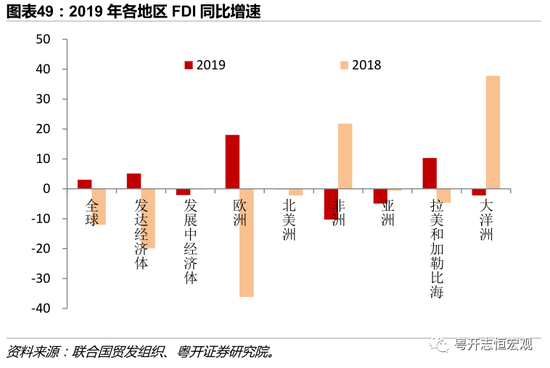 2、亚洲地区是全球贸易疲软的主要受害者,而FDI在发达经济体下降