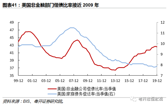 1)美国的非金融企业债务创历史新高、偿债比率接近2009年;