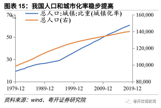 未来10年中国将新增1.6亿城镇人口。《国家人口发展规划(2016-2030)》预测,中国人口将在2030年前后达到峰值,此后持续下降,届时中国城市化率将达70%。因此,2030年中国城镇人口将比2020年增加约1.6亿,新增城镇人口将带来基础设施、地产、新零售、医疗卫生、文化娱乐等多个领域的广泛需求,为我国经济发展提供重要引擎。