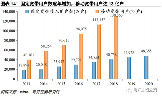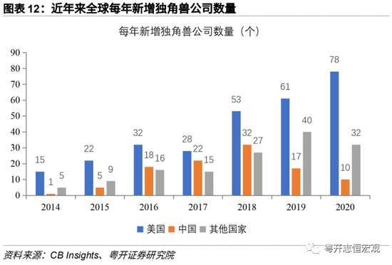 3、新经济新产业快速发展,数字经济占GDP比重接近40%,独角兽企业数量居全球第二。中国5G建设领跑全球,2020年新增58万个5G基站,累计建成71.8万个5G基站;2020年信息服务业增加值同比增速16.9%,在所有行业中增速最高;新能源汽车、集成电路产量较上年增长17.3%和29.6%;高技术制造业、装备制造业占规模以上工业增加值的比重为15.1%和33.7%。据CB Insights数据,截至2020年末,全球独角兽企业有538家,其中美国289家,中国105家;互联网消费贡献突出,全国网上零售额同比增长10.9%。