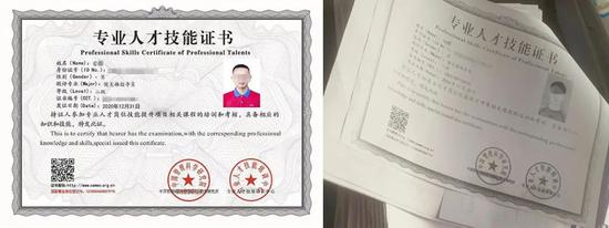 除了证书编号和身份信息不同,分别署名为邓某和雷某的两张健美操指导员二级证书几乎看不出差别——抬头为“专业人才技能证书”的纸张下方均盖有“中国管理科学研究院”和“专业人才技能培训中心”的印章。不过,雷某告诉媒体,他的那张是花2500元在网上购买的,从下单到收件共计不超过5天。雷某称,他冒着违法风险网购假证就是为了证明邓某的证书是假的。在此之前,邓某的证书帮助他通过了2020年云南省西双版纳州事业单位招聘的资格复审,他最终进入勐腊县事业单位公开招聘拟聘用人员名单。