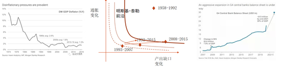 很多研究总结了通胀消失的原因,包括:人口老龄化、技术进步、全球化、贫富分化等。这些结构性因素导致了货币超发不会再像货币主义预测的那样带来同等比例的价格上涨,而是流入金融市场(包括房地产)形成资产泡沫。于是,如果央行的货币政策还是传统的通胀目标制,也不把金融稳定和资产泡沫纳入目标范畴,那么就会有更大的货币宽松和利率降低空间,甚至是可以将利率降低为负。在这种情况下,传统的货币政策框架被解构,无论是固定货币增长规则,还是泰勒方程,都事实上被扔到了货币政策工具箱之外。当前的货币政策更像是根据现实经济形势“走一步算一步”的实用主义的相机决策。