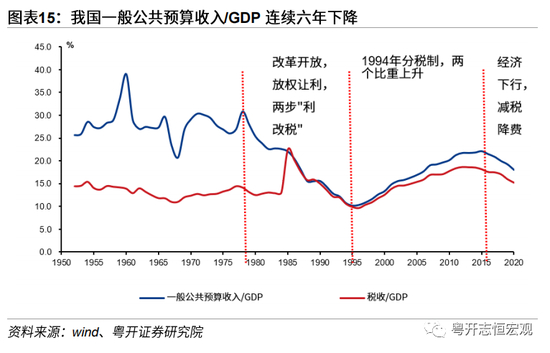 当前中国的宏观税负高于美国主要是因为土地出让收入增速较快,而非一般公共预算,事实上一般公共预算/GDP连续六年下滑,不能再过于强调减税降费的规模和数量,而应转到减税降费对调结构的效果上,落实和完善减税清费即可。站在更长期的角度,税制改革至关重要,不仅要缓解当前的财政收支矛盾,而且要能支撑经济社会行稳致远。