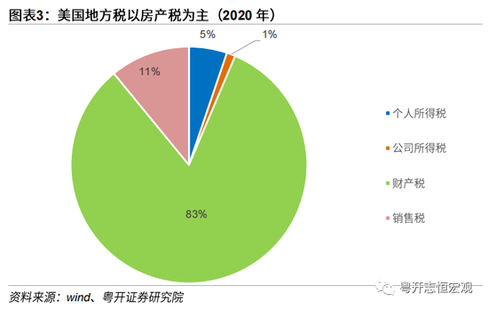 3)地方政府税收以财产税为主。包括房地产在内的财产税是地方政府税收的主要来源,2020年占地方税收比重高达82.7%。此外,销售税和个人所得税占比分别为10.9%和5.2%。
