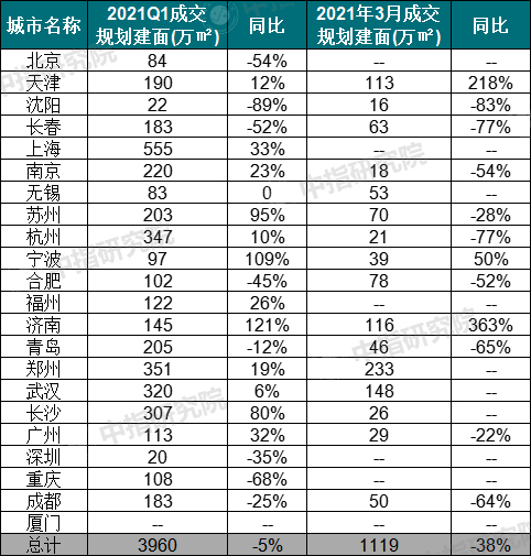 2021年一季度重点22城(市本级)住宅用地成交情况