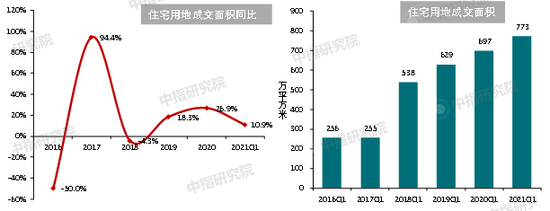 2021年一季度,受重点城市供地“两集中”政策影响,地方政府推地量与去年同期低基数基本持平,住宅用地成交规模同比小幅增长。据初步统计,2021年一季度,全国300城住宅用地推出1.8亿平方米,与去年同期基本持平;住宅用地成交1.5亿平方米,同比增长8.4%。其中,受供地“两集中”政策影响,3月,22个重点城市住宅用地成交面积同比普遍下降,一定程度上拖累了300城整体成交规模。