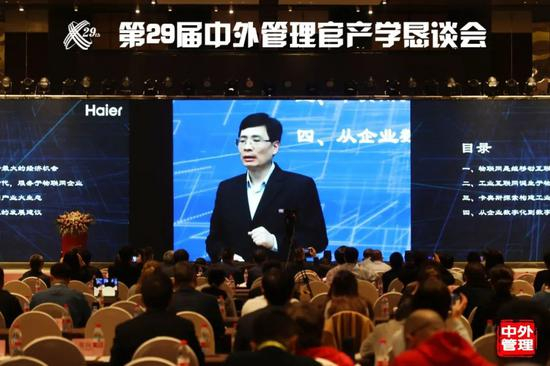 2021年3月27-29日,由《中外管理》主办的第29届中外管理官产学恳谈会在北京举办,主题为:2021• 双循环时代的“核”引擎。海尔集团总裁周云杰应邀出席并作了主题演讲:《工业互联网:第四次工业革命的登场》。