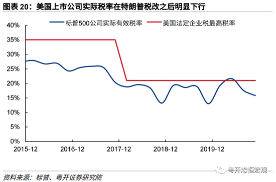 而随着新冠疫情加快数字经济的发展,同各国实施经济刺激后面临财政压力加剧,税改需求更加迫切。4月5日,美股财长耶伦表示,正在与G20各成员国合作制定全球最低税率以结束各国竞争。此举也得到了欧盟委员会的积极响应,未来将继续在OECD等多边框架下致力于达成一致税率。历史上美国的税改政策都将带来了国际化的影响,尤其是当今经济全球化背景之下,税基越发多变,各国对税收差异更为敏感。美国若推行加税,短期可能使资金和生产要素从美国本土流出,这迫使其他国家为减少外部冲击实行相似政策以减少税收差异,维持国际收支平衡。
