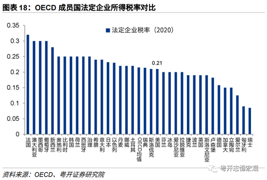 拜登的税改计划目前正式发布的主要是调高企业税,个税、资本利得税等调整内容仍在酝酿之中。自20世纪80年代以来,美国已实施多轮大规模的减税改革,但加税措施鲜见,其他各国为吸引跨国企业投资纷纷降低公司所得税率。但08年金融危机之后欧美国家财政压力加大,如何在维持国家竞争力的同时保护公司税基成为重要命题。发达国家主导的多边组织也在积极探讨公平课税问题,OECD于去年10月正式发布了税改蓝图,要在全球推出一个最低税率,防止跨国企业通过转移利润来侵蚀税收。而新冠疫情推动数字经济的发展,各国实施经济刺激后面临财政压力加剧,税改需求更加迫切。长期来看,拜登加税举措可能引发全球竞争性减税趋势的终结。