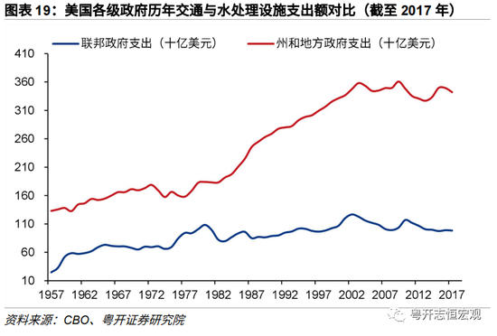地方政府配合意愿不足导致刺激效果不及预期。美国财政体制是比较彻底的财政联邦主义,州和地方政府在基建投资财政支出方面占据主导地位,基建投资具有较强的地方属性。全国范围内的基建投资中,州和地方政府投资占比超过70%。特别是道路、运输、水电等传统基建,主要是由州和地方政府的基建投资贡献。即使联邦政府通过转移支付给予州政府,但是最后基建项目落地依然具有很大不确定性。