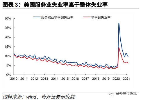 拜登基建计划还有助于解决劳动力市场存在的结构性问题。由于美国消费中占比70%的服务类消费恢复缓慢,服务业的就业状况也不理想,从事服务岗位工作的失业率仍超过10%,显著高于制造业岗位工作的失业率水平。尽管美联储注意到失业的结构性问题,强调“实现充分就业还有很长的路要走”,但维持货币宽松不能解决失业结构性问题。货币政策属于总量政策,财政政策因支出工具明确的指向性而具有更多的结构性作用。劳动力市场的整体修复还需要财政政策发力,这也是拜登试图加码基建来推动就业的经济考虑。