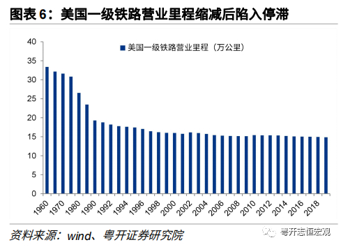 铁路:美国始于19世纪30年代,于20世纪初达到建设高峰。1916年美国铁路里程数即达到峰值的40.6万公里,此后美国铁路开始了漫长的并购整合、私有化的历程,私营业务以货运为主,并无大规模的新线建设,主要的投资集中在更新和维护方面。美国目前的铁路运营总里程为22万公里,货运铁路系统是美国国内货物运输的主力,而在客运铁路、高铁方面相对落后。公路:高速公路支出是公共基础设施支出的最大部门,但全国40%的公路处于一般或较差的状态,城市拥堵问题对居民带来损失。