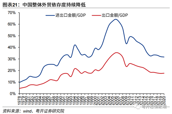 1、大国通胀不同于小国,大国CPI走势的决定性因素在于国内供需及相关政策。对于当前中国经济而言,尽管以原油和铁矿石为代表的、受制于人的部分大宗商品涨跌仍然对国内通胀产生一定影响,但输入型通胀已难以引起国内物价的全面上升。输入型通胀带来国内物价全面上升一般需要满足以下三点:一是进口国对外依赖度较高,经济发展更多依赖外需;二是进口国议价能力较低、为价格接受者;三是进口国采用锚定美元的固定汇率制度,导致大宗商品上升时期进口价格等比例上涨。回顾21世纪以来我国经济发展历史,伴随我国经济的持续增长、经济增长动能的切换,当前我国外贸依存度已明显降低、经济发展更多取决于国内需求、人民币汇率波动性显著增强。伴随我国加快构建新发展格局,将发展立足点放在国内,输入型通胀已难以引发物价的全面上涨。但值得注意的是,受制于部分自然资源禀赋稀缺、部分产业行业集中度相对较低等因素影响,目前我国仍然对原油、铁矿石等大宗商品定价权较低,部分海外大宗商品的涨跌仍在一定程度上对我国物价产生影响。