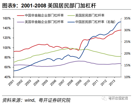 2001年中国加入WTO开启经济腾飞新篇章,城镇化、工业化进程加速,叠加欧美经济持续修复,共同推升全球大宗商品需求。彼时全球经济进入增长“舒适区”,并逐步形成拉美生产资源-中国制造-欧美消费的国际贸易体系。一方面,2001年美国网络泡沫破灭叠加“911”事件冲击美国实体经济后,美联储采取宽松货币政策,2001-2003年期间连续13次下调联邦基金利率至1%。在宽松货币、放松金融监管、提供住房抵押贷款税收优惠政策的一系列刺激下,美国整体信贷大幅扩张,居民部门杠杆率快速上升,带动欧美经济从复苏走向过热,推动以原油为代表的大宗商品价格上升。