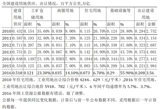 目前的忧虑,是我们限制住宅用地的一个重要理由,至少是嘴上说的理由。近年来,住宅用地占建设用地的比重越来越小,我们给出的2010—2016年的数据,住宅用地的供给比重由20%降到6.7%。在这么一个供地状况之下,国民居住形态很难改善。