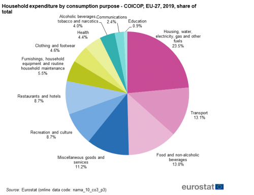 更具体一点,在下面的欧盟国家2019年恩格尔系数中,可以看到除了罗马尼亚和立陶宛以外,欧盟其他国家恩格尔系数都在20%以下。
