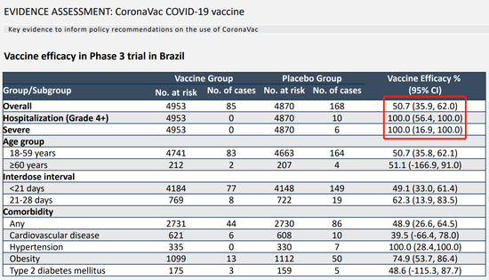 科兴疫苗在巴西的临床试验数据,常被外媒诟病,整体有效率只有50.7%。