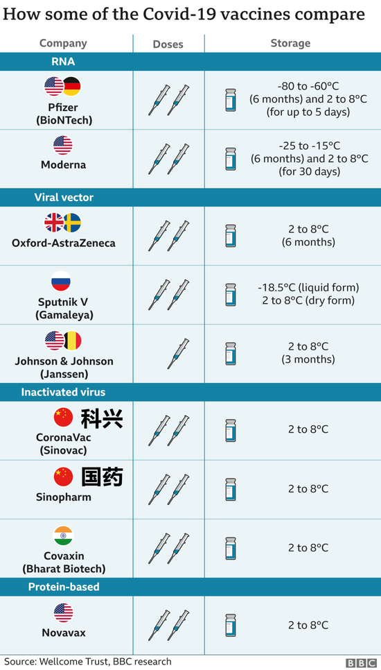 目前常见的新冠疫苗,大约分为以下几种技术路线: