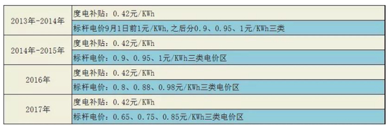 随着光伏行业的发展,技术得到了飞速发展,同时光伏设备价格也随着大幅下降,光伏电站的标杆电价随之下降,而度电补贴电价一直维持在0.42元/KWh的高水平长达五年(2013年-2017年)。