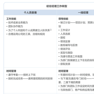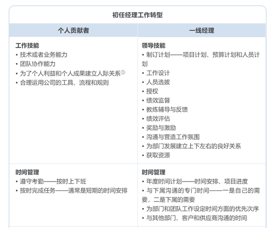 下表概述了从一线员工到经理必经的转型。