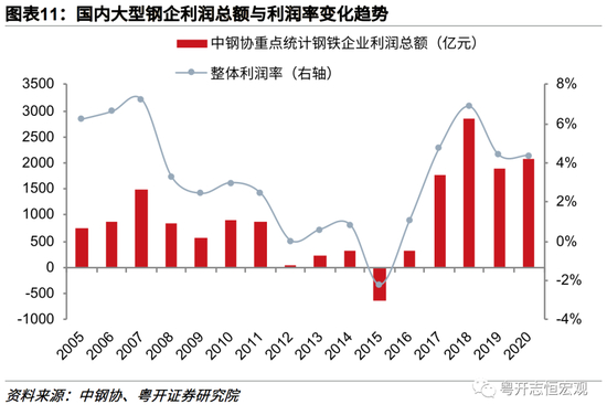 5、与供给侧改革侧重去产能不同,当前碳达峰碳中和背景下,政策重点在于钢铁行业去产量、降低碳排放,供需矛盾短期内难以缓解,钢铁行业利润有望持续修复。2021年1-4月规模以上钢铁行业的利润总额1529.8亿元,同比增超4倍,利润率为5.2%,高于去年同期的1.6%和去年底的3.4%。