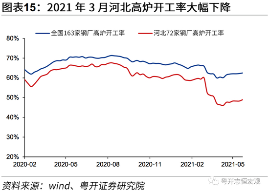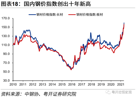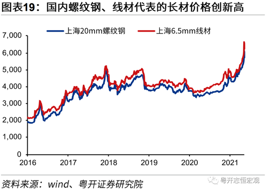大宗商品的价格大涨,期货市场铁矿石、螺纹钢炒作升温,市场担忧钢铁价格向下游耐用消费品市场传导。年初以来国内外大宗商品价格暴涨已经积累了一定泡沫,现货市场受到贸易商投机炒作的助推,期货市场还受到流动性充裕以及市场情绪的影响。5月中旬以来钢价阶段性回落,是由于钢厂限产预期短暂让位于政府保供稳价。