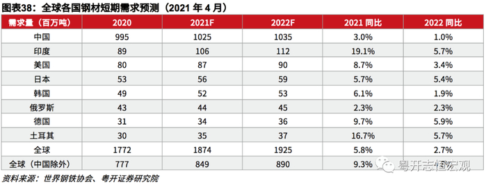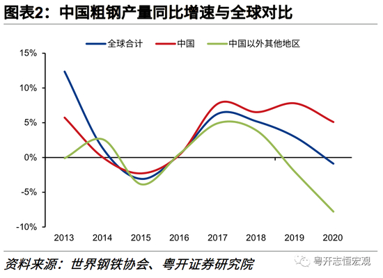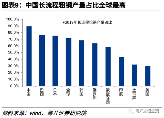1、总体上,以粗钢为代表的钢铁产量高、增速快
