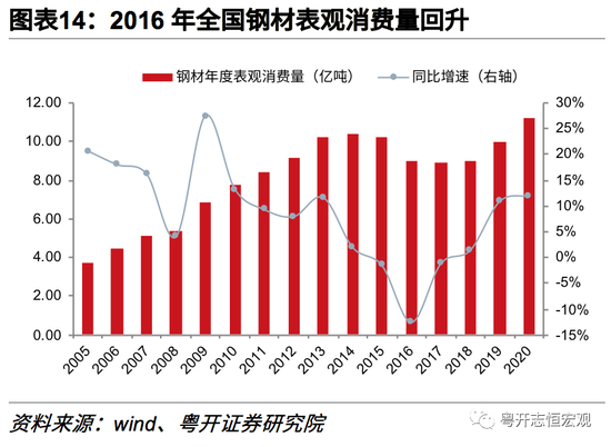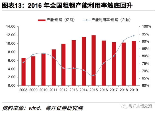 其中,供给侧改革期间侧重去产能,在利润率的推动下,行业产能利用率升至高位,粗钢产量持续上行,即“去产能增产量”。推进供给侧结构性改革是“十三五”时期的发展主线,而去产能是首要任务。钢铁行业则是淘汰落后产能和化解过剩产能的重点整治对象,2016年国务院发布总纲文件,要求在未来3~5年钢铁去产能1~1.5亿吨,多部委连续出台配套的政策措施,加速钢铁行业去产能。2016至2019年,钢铁行业合计淘汰1.45亿吨粗钢产能以及1.4亿吨地条钢产能,去产能总量超2.85亿吨,钢铁行业粗钢产能下降至2018年的11.5亿吨,较2015年下降6.5%。行业供需格局的优化使得钢铁行业盈利迅速回暖,钢材表观消费量增速不断回升,粗钢产量也在盈利刺激下持续上行。供给侧改革后行业严禁新增产能,同时产能置换政策不断收紧,但是钢产量供给快速增加,钢材价格逐渐下行导致钢企利润增速下滑。