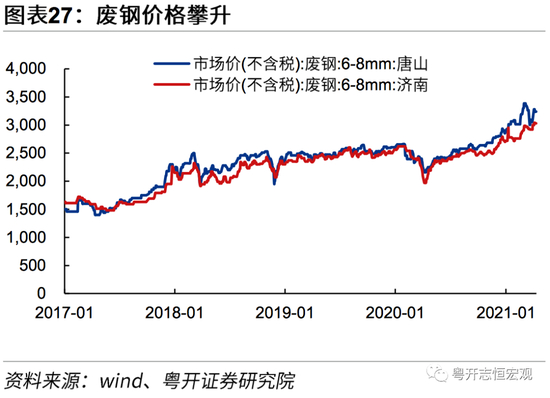 三是如果严格实施钢铁产量负增长等举措,供需矛盾加剧,即将面临宏观滞胀风险。一方面,上游钢材原材料价格上涨,使得中下游议价能力较弱的制造企业利润受到侵蚀,从而降低企业扩张投资生产意愿,投资对经济拉动或低于预期;另一方面,中下游面临原材料缺乏、价格高涨的停产风险,中下游破产倒闭后中上游的需求难以持续,滞胀风险逐渐显现。