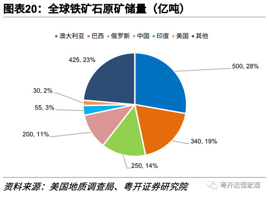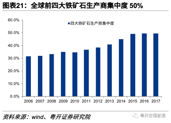 全球铁矿资源储量由海外寡头垄断。澳大利亚和巴西铁矿石原矿储量最丰富,是主要的铁矿石出口国,南非、美国、印度等也贡献一部分出口量。不同国家在出口产品上差异较大,我国铁矿石储量丰富但品位较低。当前全球前四大铁矿石供应商分别为巴西的淡水河谷(Vale)以及澳大利亚的必和必拓(BHP)、力拓(Rio Tinto)、FMG集团,四大厂商的产量集中度CR4约50%。巴西的淡水河谷出口的矿石品位较高(65%以上),FMG从2009年开始扩产,但是矿石的品位较低(58%)。