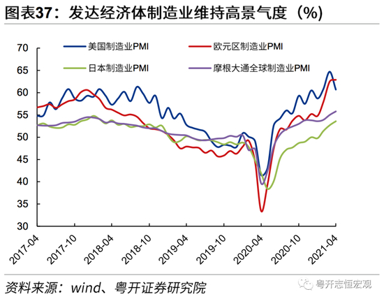 3、海外制造业用钢需求走强,海外市场供需错配持续,国际国内钢价走阔导致钢企出口动力强,不利于国内钢铁供给。据世界钢铁协会的短期预测,2021年全球钢铁需求同比增长5.8%,而除中国外钢铁需求同比增长9.3%。发达经济体制造业活动持续扩张,海外制造业走强拉动国际钢材需求。而海外粗钢产能利用率仍在爬升阶段,整体尚低于疫情前水平,市场供需错配导致国际钢材价格加速上涨。我国疫情控制后复工复产较早,粗钢供给强于需求恢复,国内钢价涨幅远远低于国际,国际国内钢铁价格价差走阔。去年四季度以来,我国钢材出口触底回升,2021年1-4月份我国钢材出口量同比大幅增长24.5%。国内钢企出口动力强,不利于国内钢铁供给。