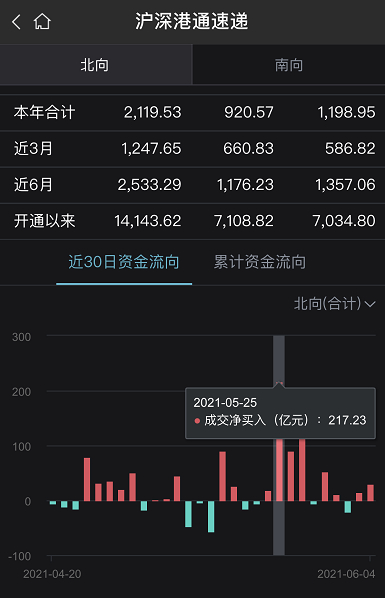 5月25日,被视为“热钱”观察窗口的北向资金流入217.23亿元,26日91.03亿元,27日146.27亿元,单周净流入额468亿元,创下自沪深港股市交易互联互通机制试点以来单周净流入量最高纪录。