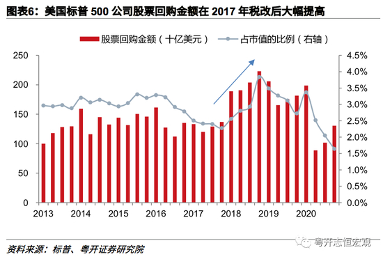 4、对科技巨头而言,海外收入占比较高且存在利润转移的跨国公司将受到较大冲击,包括补缴税款的直接冲击和减少避税带来的间接冲击。即使跨国科技巨头回归,境外利润回流也很难用于扩大国内投资、增加就业岗位,而是现金股票回购的方式投入金融市场,对美国经济的正向拉动较小。