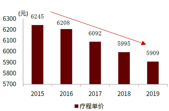 图表:中国医美疗程单价变动趋势