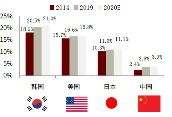 图表:主要国家医美项目渗透率对比