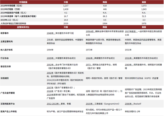 图表:中国、韩国、美国医美市场对比