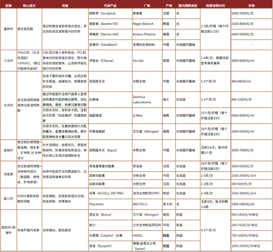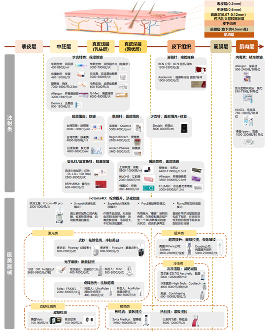 图表:轻医美项目主要产品及其作用皮肤层次一览