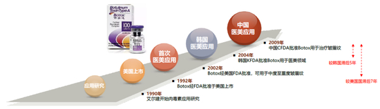 图表:Botox在美国、韩国及中国上市时间