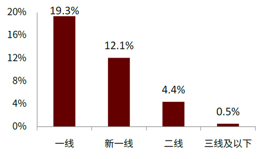 图表:2019年中国医美用户不同线级城市渗透率