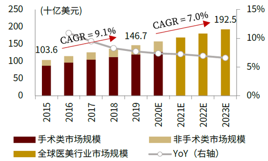 图表:全球医美行业市场规模