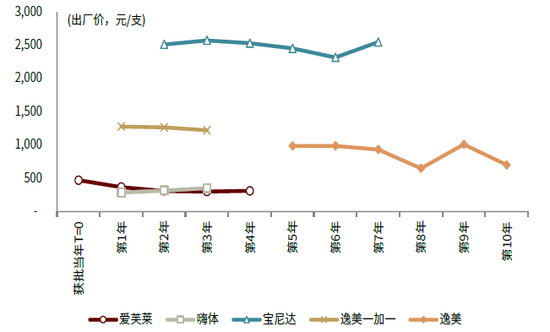 图表:爱美客旗下产品出厂价变化曲线