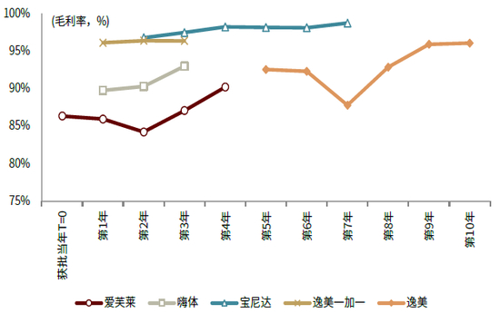 图表:爱美客旗下产品毛利率变化曲线